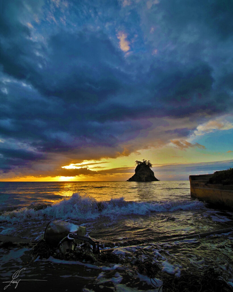 手前に倒れているのは、島のライトアップに使われていた照明と支柱です。